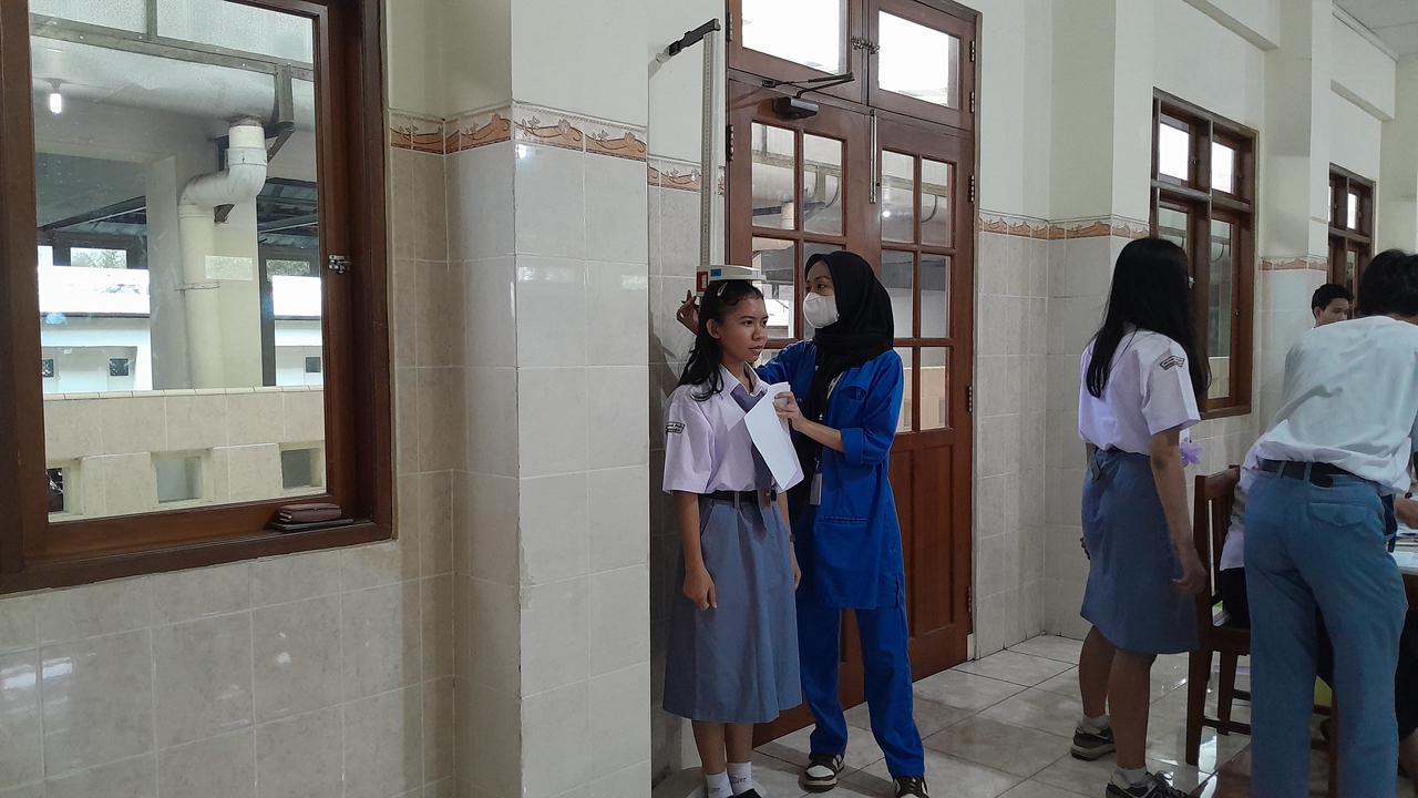 Kegiatan yang berlangsung mulai pukul 08.00 WIB ini dirancang secara komprehensif. Pelaksanaannya diawali dengan skrining status gizi melalui pengukuran antropometri, dilanjutkan skrining anemia menggunakan alat pemeriksa kadar hemoglobin (Hb) untuk mengetahui status anemia peserta secara akurat.